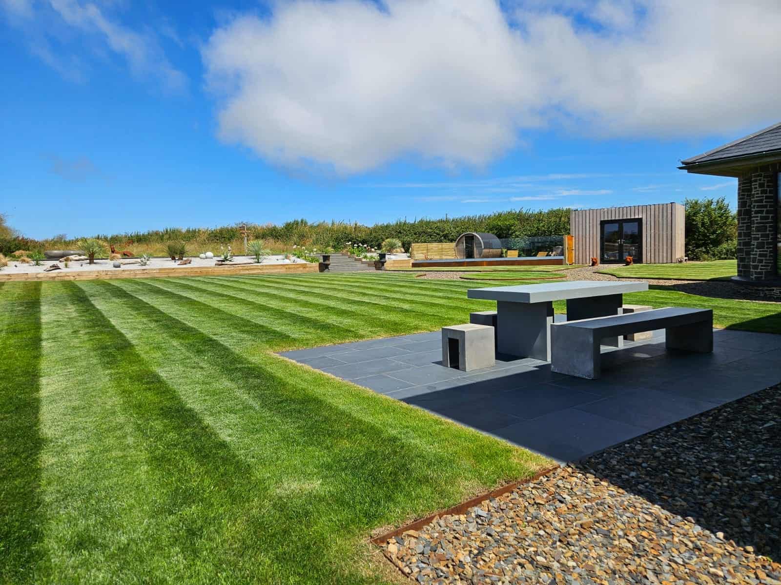 This large-scale landscaping project in Hartland, North Devon transformed a former hard-standing car park into a luxury coastal garden, designed to enhance a holiday let while complementing the surrounding landscape.
