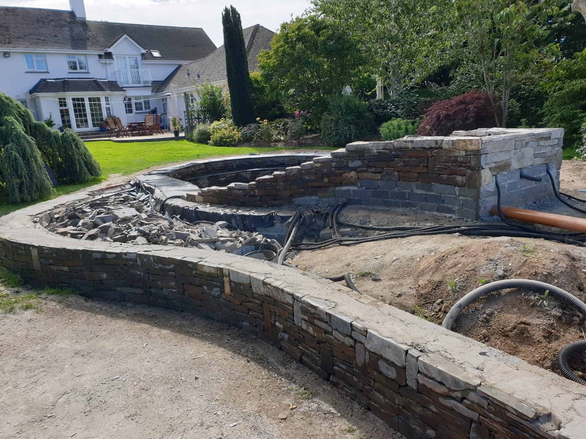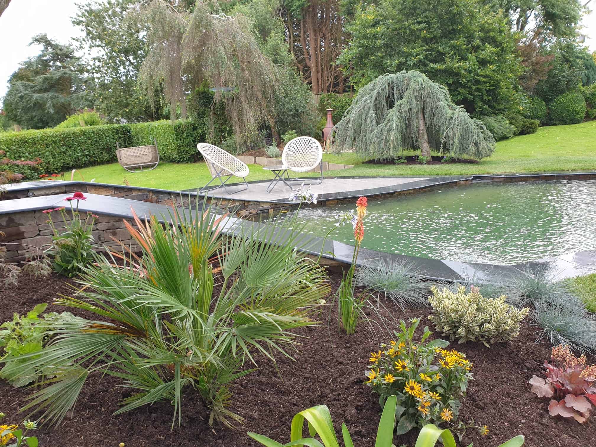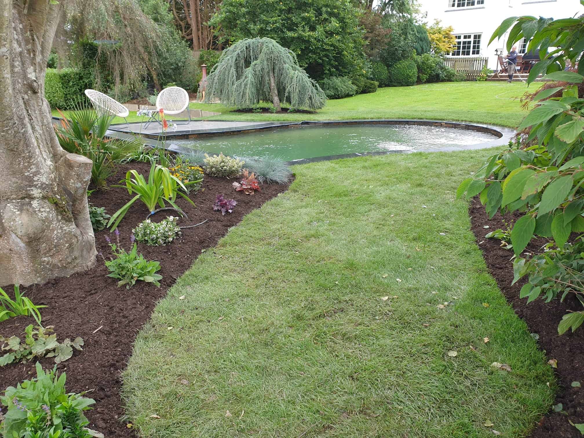 The site presented significant challenges, including extremely hard ground conditions. To prepare the area for planting and lawns, we excavated nearly 500 tons of existing material and imported up to 500 tons of high-quality topsoil, creating a solid foundation for long-lasting lawns and planting. The garden was finished with carefully laid premium turf, ensuring the lawns established quickly and looked lush from the outset.