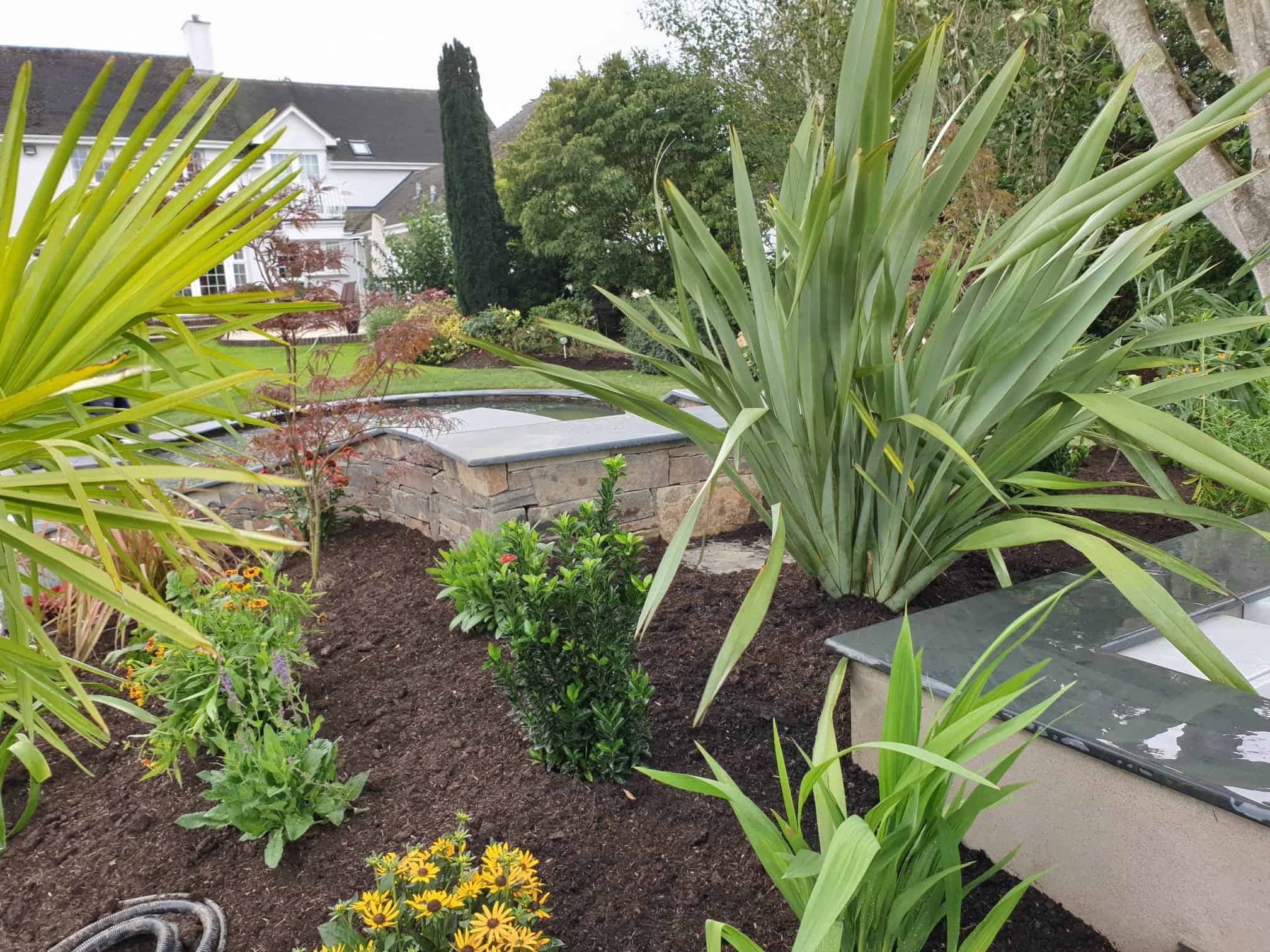 To highlight the garden’s textures and finishes, horticultural silver grit was incorporated around the planting, enhancing the greens and creating a refined, polished finish. GARFs (Green-Amended Recycled Fertilisers) were also integrated into the planting to support healthy growth and long-term sustainability. The planting scheme focuses on resilient species such as agapanthus, yuccas, and ornamental grasses, ensuring year-round interest with minimal maintenance.